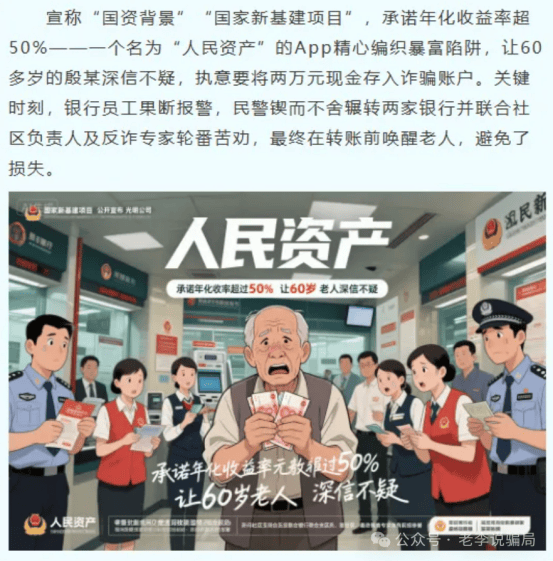 假借“国家”背景发布虚假理财产品,以高额收益为诱饵,精准针对人们“投小钱赚大钱”的投机心理。