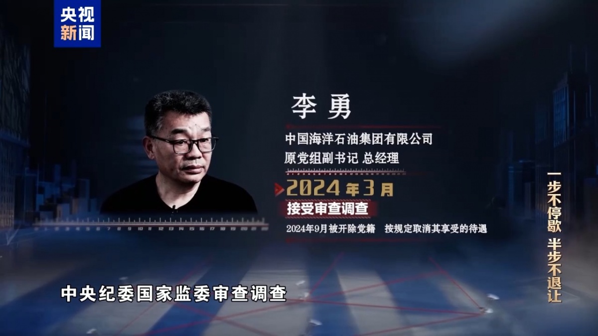 李勇,中国海洋石油集团有限公司原党组副书记、总经理,2024年3月接受中央纪委国家监委审查调查。李勇长期分管中海油在境外的大量项目,其跨境腐败问题极其突出。