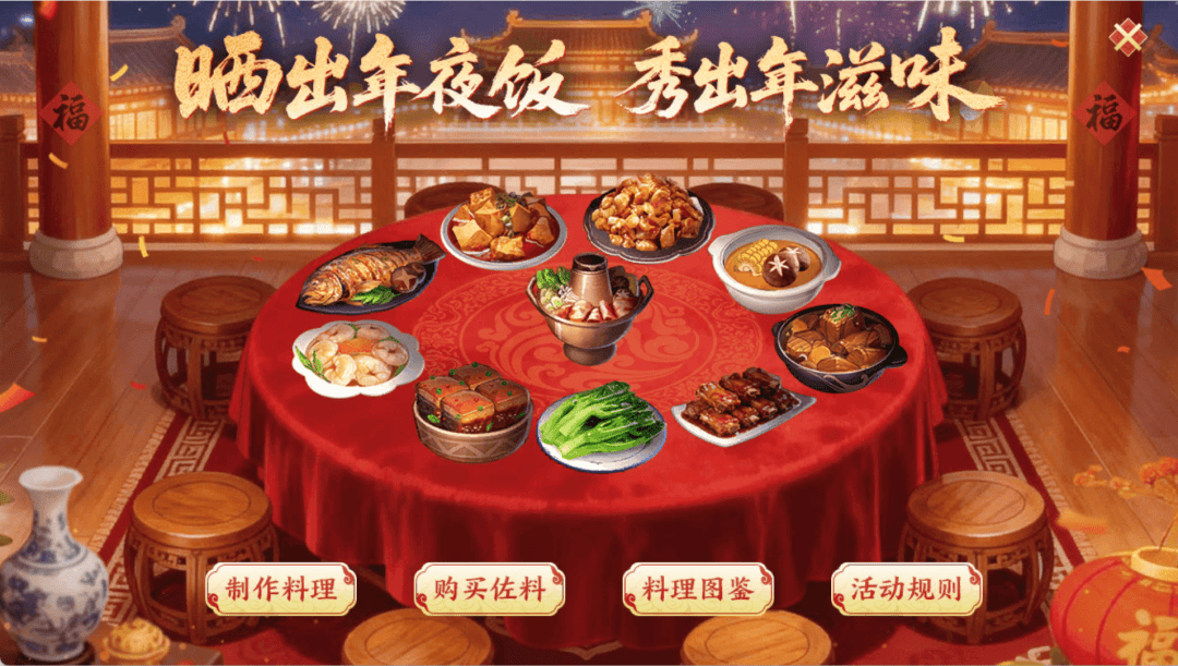 活动内容:马上开饭,团圆有礼!除夕至元宵进入烹饪狂欢。使用任务获取的食材烹制佳肴,供奉食神为家族累积进度,共领团圆礼。成功制作所有料理并解锁传说料理,即可开启【年夜饭终极礼包】,完成活动最高可得132锭绑银、88代金券、30天食物语幻化礼包、30天“舌尖上的御龙”,并加冕限定称号—— 【味蕾探险家】!