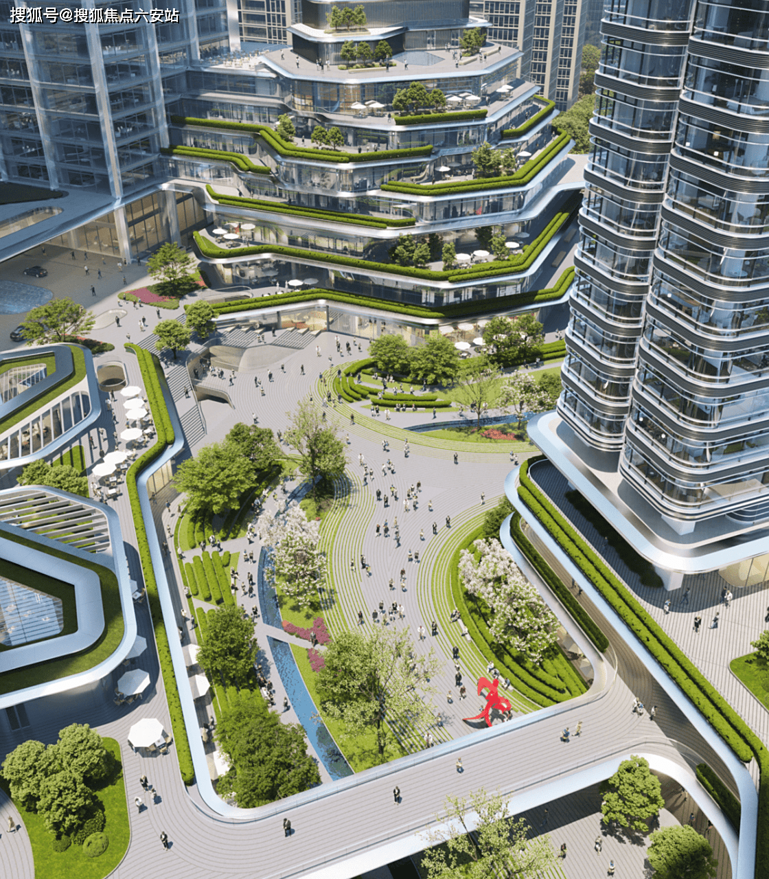 生态革命:14000㎡立体森林景观,屋顶跑道、垂直花园与恒温泳池构成“森林微城市”。